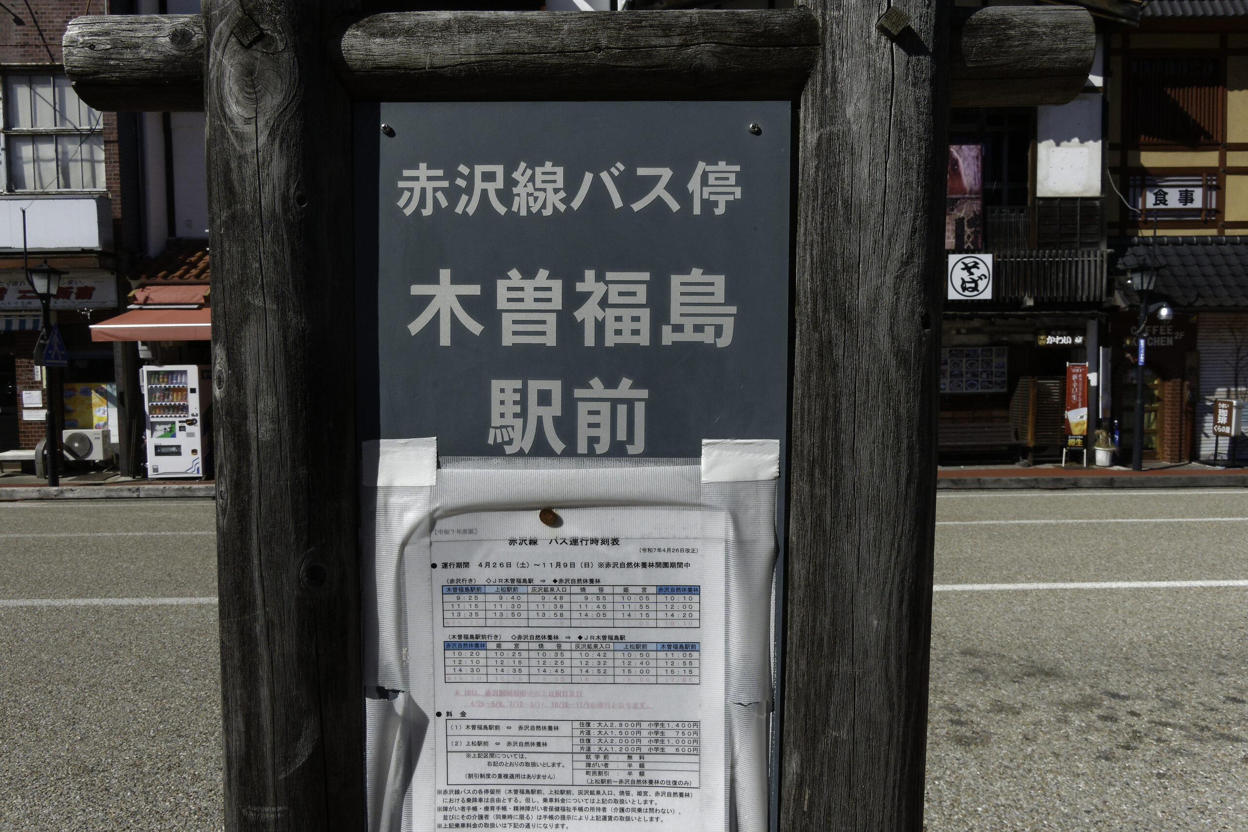 10時30分、木曽福島で下車。赤沢行きのバスを待つ。