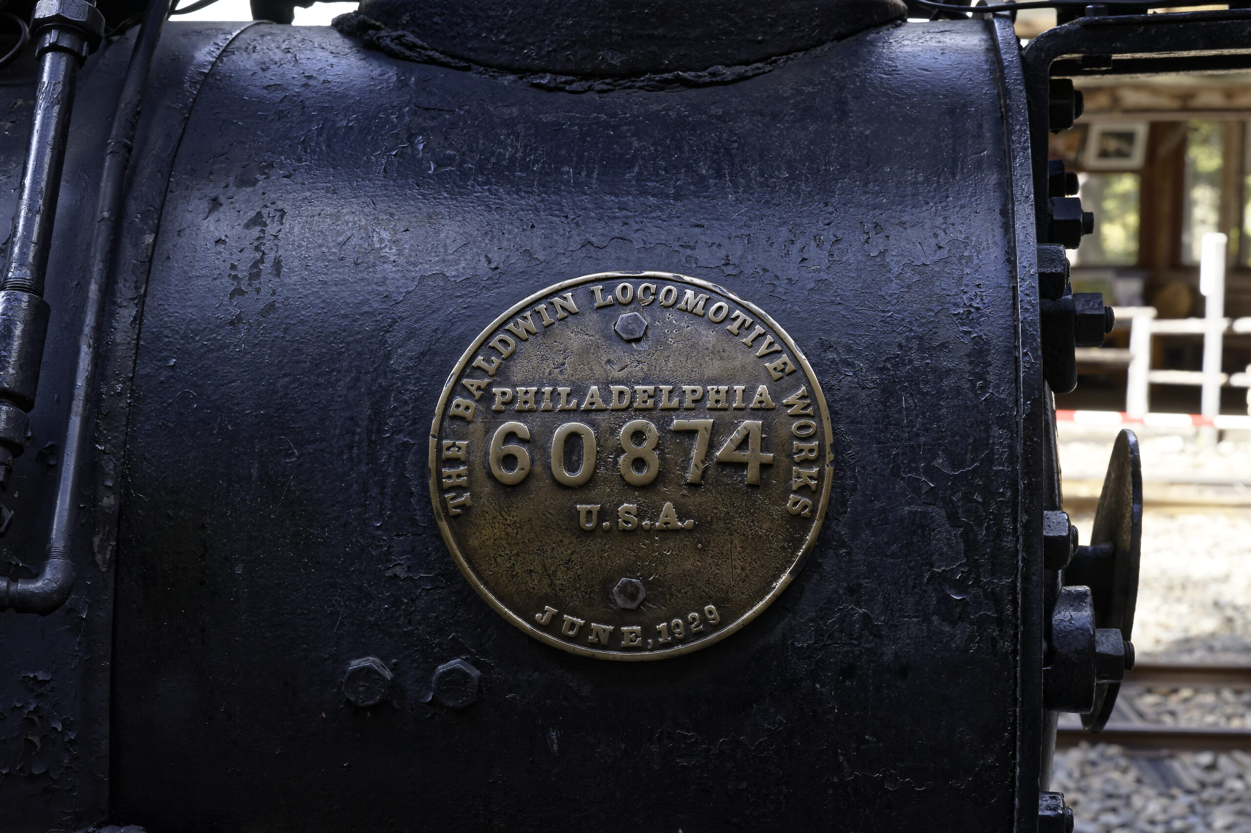 初期の蒸気機関車(SL)は静態保存のようだが、今にも走り出しそうな姿である。10両導入されたものの、敗戦時に残ったのは3両。そのうち1両が現地で保存され、他は母国アメリカの博物館に引き取られたとのこと。銘板からフィラデルフィア製であることがわかる。