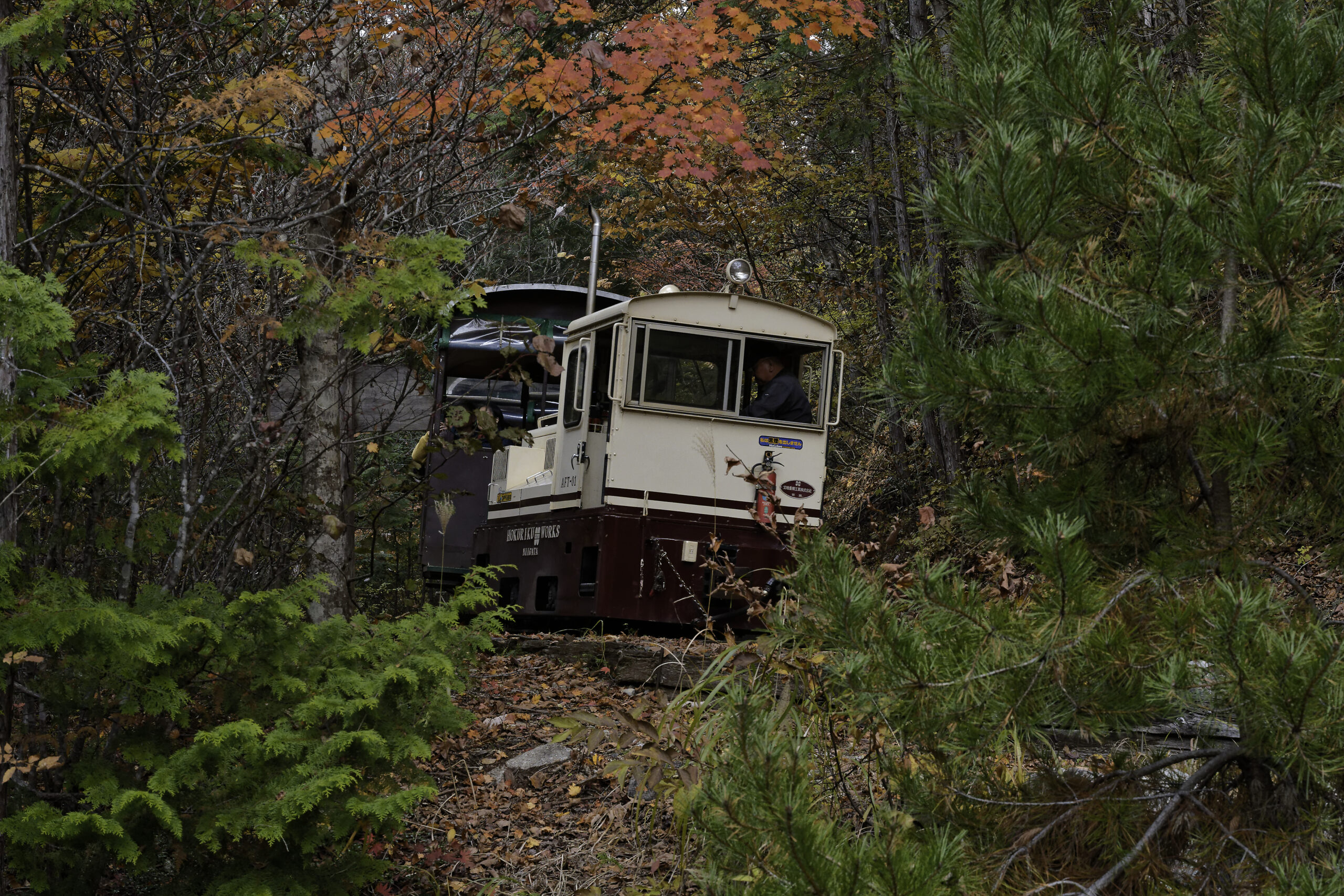 針葉樹の木々を切り出し搬出するための鉄道である以上、当然その森の中を走ることになる。