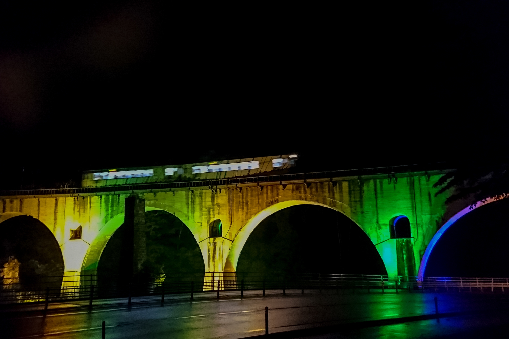 釜石線(遠野〜宮守) 「銀河鉄道の夜」を撮影するため、遠野と宮守を往復した。宮守橋梁のライトアップされたアーチを渡る列車を待ったのは、6月の梅雨の冷たい雨が降る夜であった。