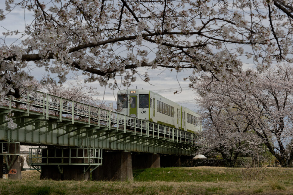 羽越本線(新発田〜水原) 2014年、TV番組「ビフォーアフター」の仕事で瓢湖を目指した際のことだ。電化区間ではあるが、当時はまだ気動車の運用も多かった。新幹線から特急を乗り継ぎ、降り立ったホームにポツリと出発を待つ車両の姿。「遠くまで来たな」という感慨が深く胸に落ちた。
