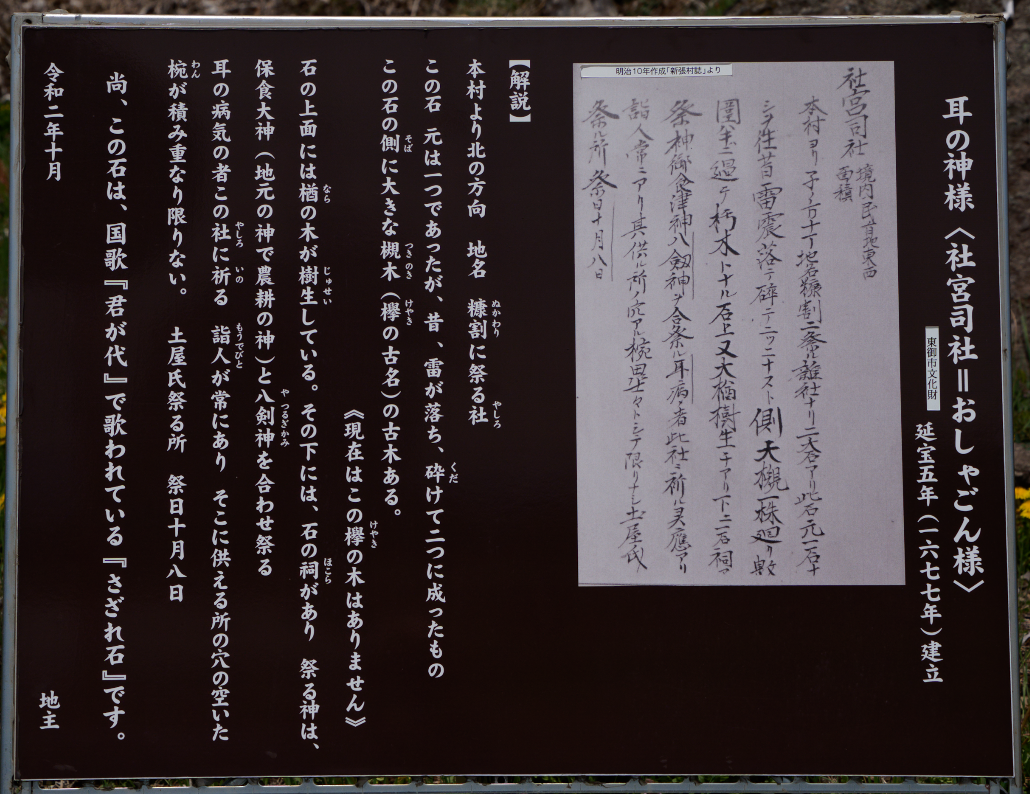 先日、長野県東御市の「社宮司社(通称:おしゃごん様)」を訪ねた。延宝5年(1677年)建立という歴史を刻むこの祠は、古くから「耳の神様」として篤く信仰されており、今もなお、耳の通りが良くなることを願う「穴の空いたお椀」が数多く供えられている。
