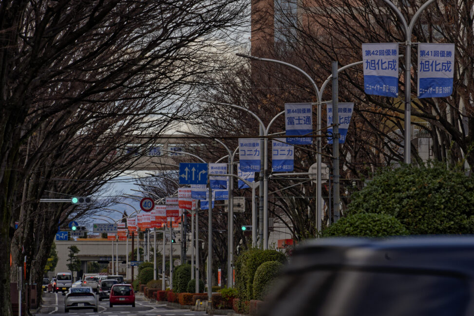 広い通りには元旦の群馬駅伝ののぼりが。いよいよ年末。