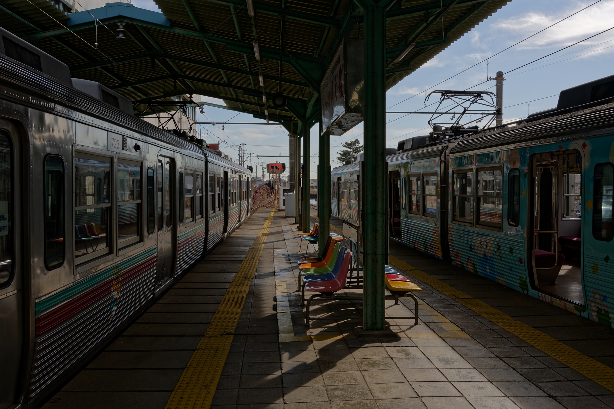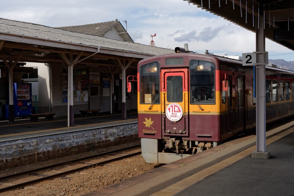 上毛電鉄「赤城」まで乗車、東武鉄道側のホームには「両毛」号が入線していた。徒歩でわたらせ渓谷鐡道「大間々」駅まで歩く。