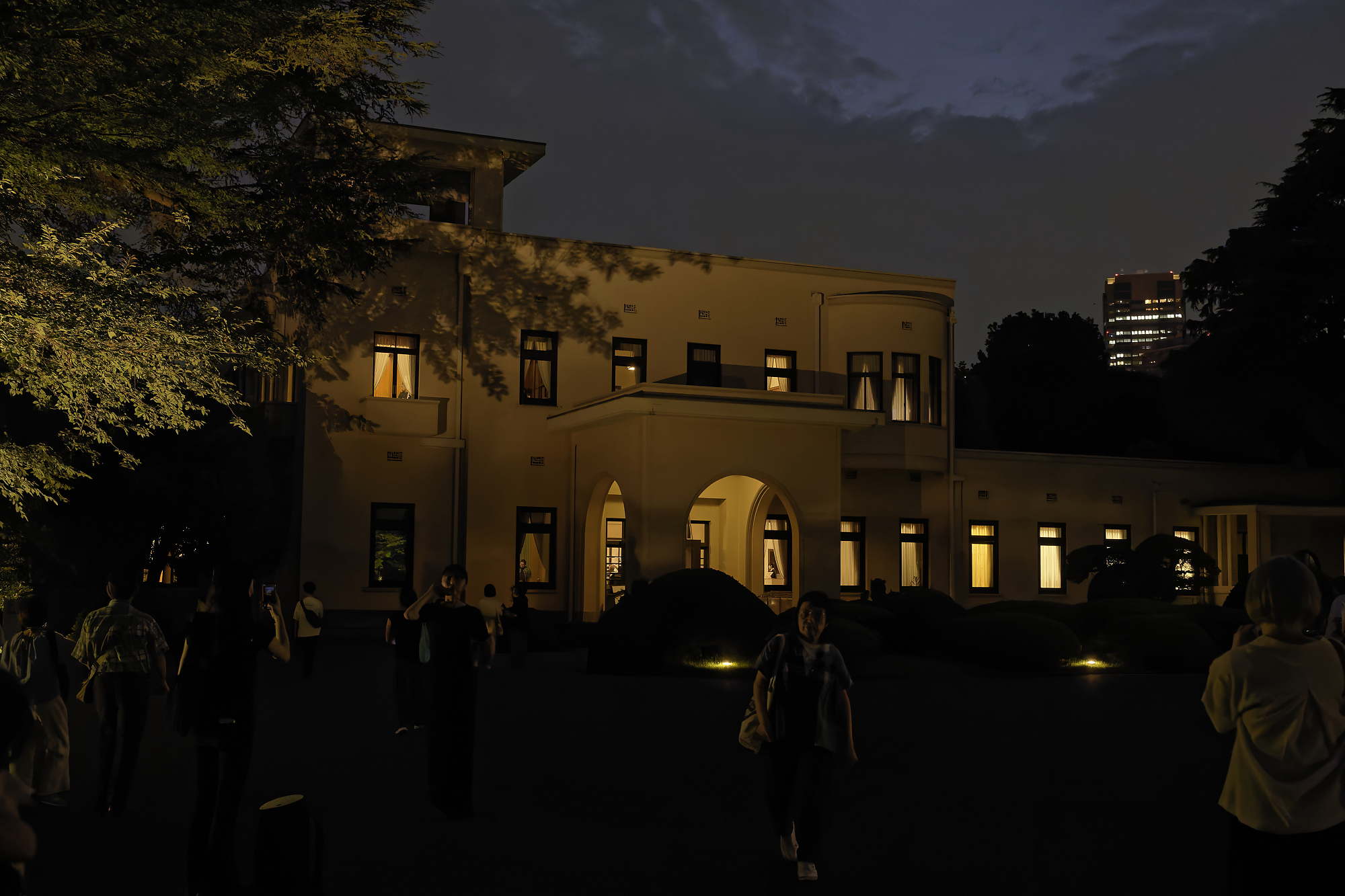建物そのものが展示物となる特別な夜、照明器具の輝きは闇に映えてひときわ美しく、