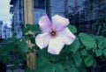 バルコニーから1階のテラスに下ろしたので水を切らす心配がなくなったのでまだつぼみがいくつもあり咲きそう。朝顔の鉢から双葉がにょき。