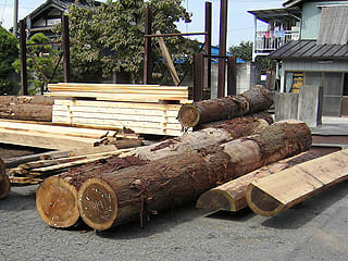 赤城町(村)の製材工場で原木を建築主とともに確認。