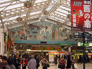 コンコースが大分立派になったが正面の壁画が健在。これもとても懐かしい。