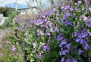 菜の花とともに「花だいこん」の薄紫の群生はやわらかな色彩で気持ちがなごむ。