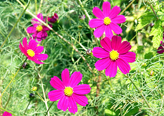 花弁が単純なかたち、一見そっけなくも思えるが風に揺れる軽やかな風情ははかなくもある。夏から冬の移ろい、動から静への時間の流れを感じさせてくれる。