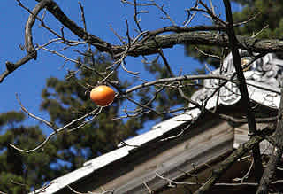 現場にある柿の木もすっかり葉が落ち、柿の実が青空に映えている。