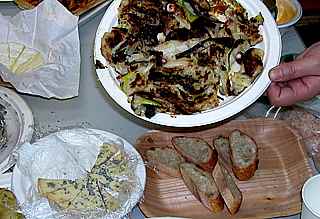 事務所内で忘年会を開く。飛騨古川の清酒「蓬莱」、グランボアのバケット、モンテドラーゴのチーズ、下仁田ネギ、吾妻のジャガイモ、お向いのクリーニング屋さんから差し入れの漬物、そして「たこ焼き」
