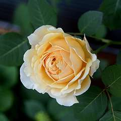 事務所のもう一つのバラが少し遅れて咲く。タグを紛失して名称が不詳となっていて花には気の毒なことをした。八重ではあるが上品な淡黄色である。鉢植えであまり花を結ばないが毎年夏が来るのを知らせてくれる。