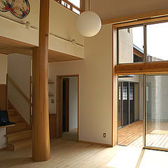 さらに空気質を良好に保つために外気を排気の倍導入するシステムで常に室内空気圧を外気より高く保ち、安定した新鮮空気をとり込む工夫がなされている。外部のほこりや冷気の侵入を止める機能もあるが高気密工法によって初めて可能となるものだ。シックハウスは建材だけが原因ではなく入居後に持ち込まれる家具や電気製品によっても引き起こされるということがまだまだ注目されていない。