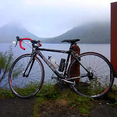 雨上がりで路面が濡れたままでなんとなく脚力をロスしている感じ。前輪がすべる感じがしたので無理せず急勾配の区間は一部押す。