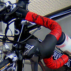 ワイヤー類交換のためバーテープを赤の蛇柄に変えた。