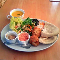 途中「Cafe&石釜パンかぼちゃとやぎ」で休憩。