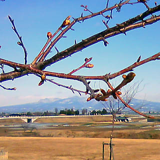 榛名山や浅間山は雲をかぶっていたが赤城はくっきりと見える。境島村の休憩所付近の桜の枝にはすでにつぼみが大きくなっている。