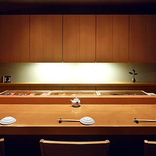 「日本料理 川蝉」は初めて手掛けた和食の店。今見ても当時気合が入った設計であると思うが「鮨なかざわ」は少し肩の力が抜けて柔らかい雰囲気が出てきたかなと思う。