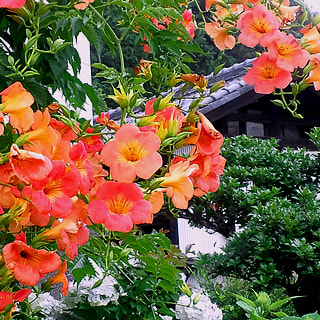 夏の日、郊外ではムクゲ、ノウゼンカズラ、百日紅など日差しに負けない鮮やかな色彩の花が多く咲いている。