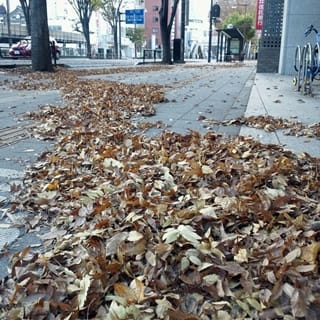 本町通りのケヤキ並木も歩道に沢山の枯葉を降らせていた。