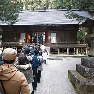 境内はみぞれ交じりの風。いかにも山の中の社だ。
