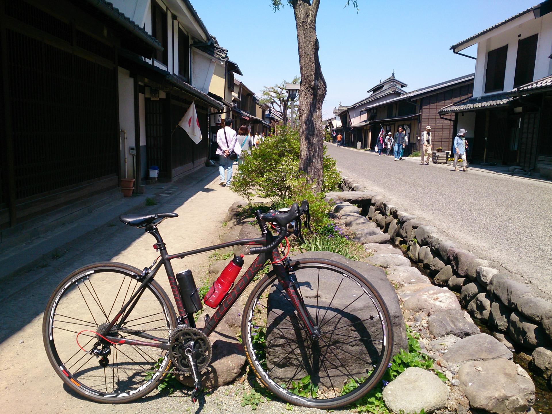千曲川に向かって下り、川に沿って走り海野宿で休憩。きれいに修景が進む伝統建造物群保存地区は祭日でもあり、日章旗が掲げられ、明治時代にでもタイムスリップしたよう。