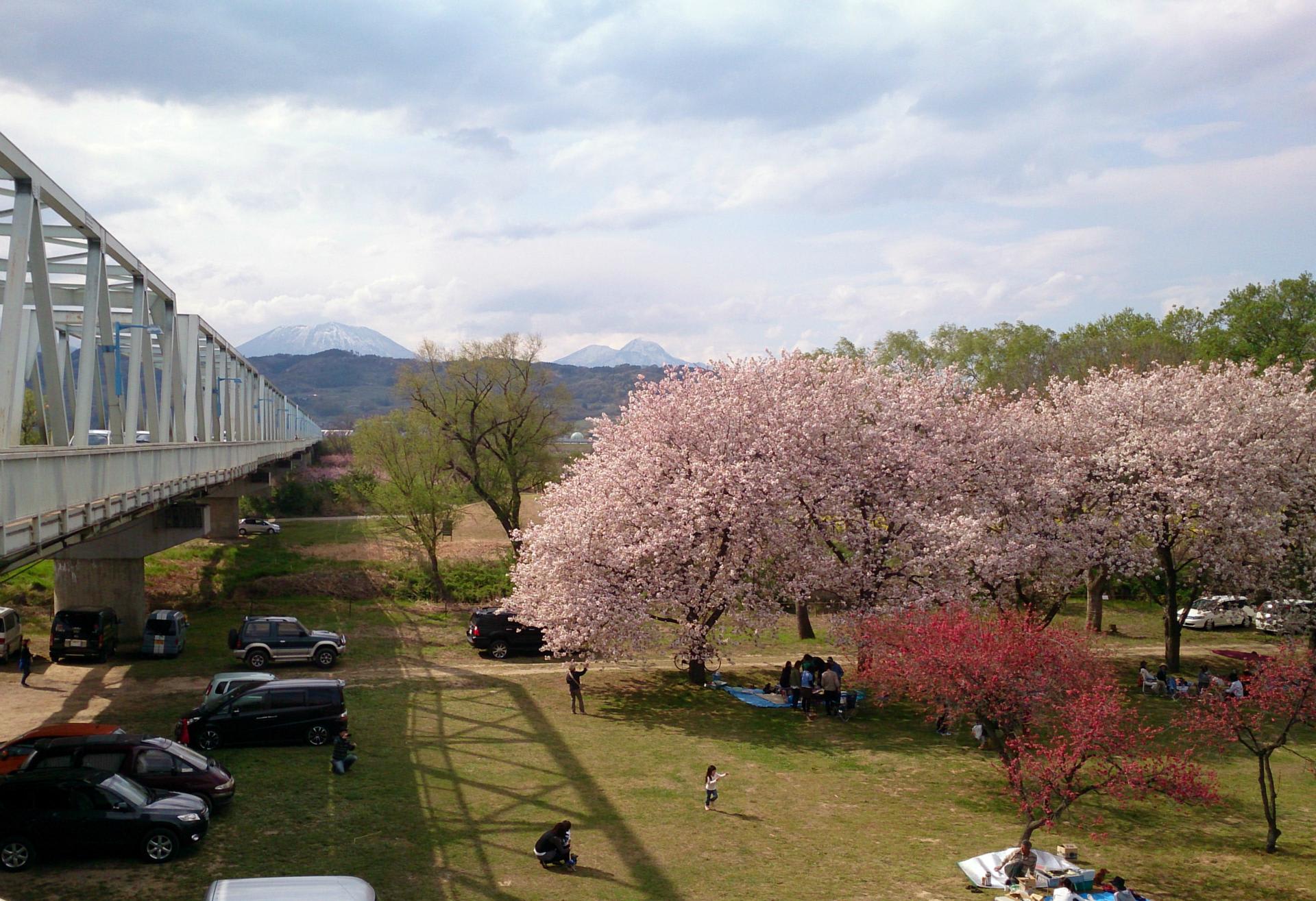 それでも川中島の広い河原を過ぎ小布施橋で右岸に渡る。桜堤の花見で賑やか。やはり春が遅いかな。
