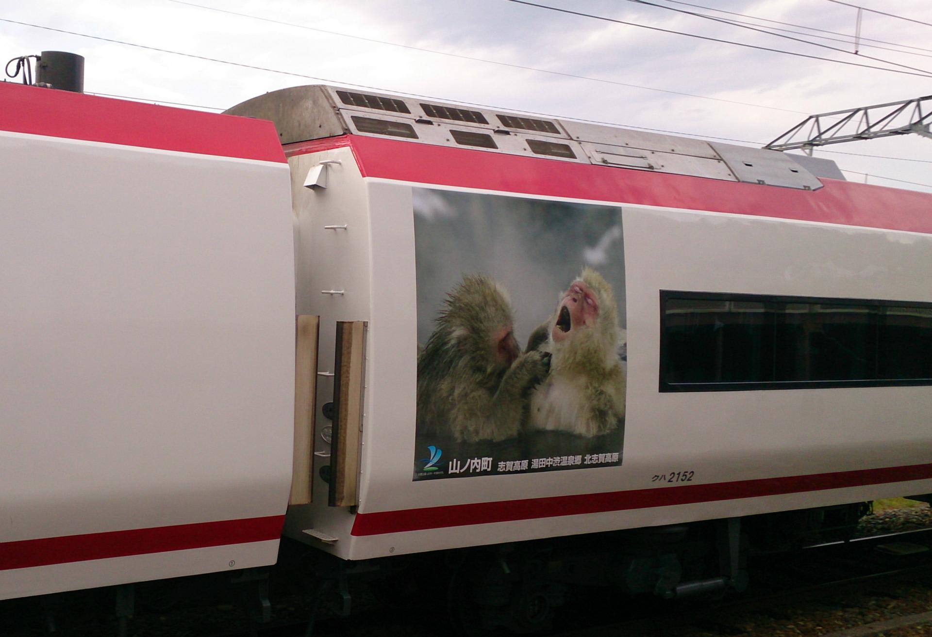 長野電鉄は小田急のロマンスカーやNEXが余生を送っている路線。スノーモンキーに出会う。