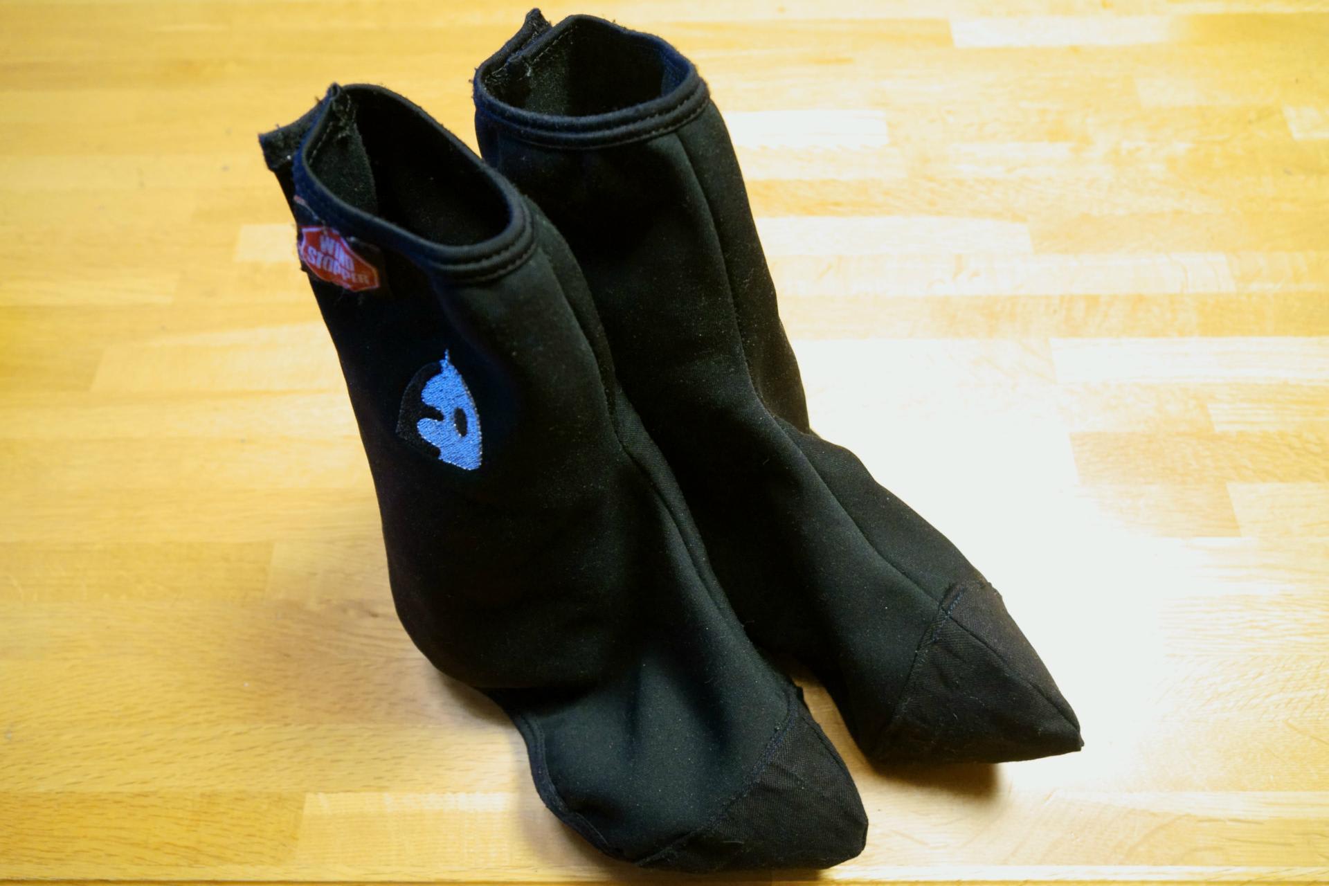 ロードバイクのシューズはこの時期寒さに無防備、シューズカバーなるものを被せ爪先からの寒さを凌ぐ。