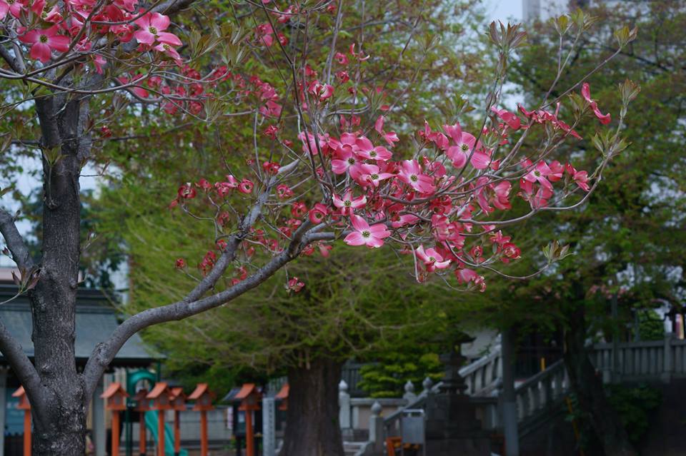 最近古いレンズで画像を取るのが面白いのでハナミズキで華やいだ景色を撮りながら散歩した。