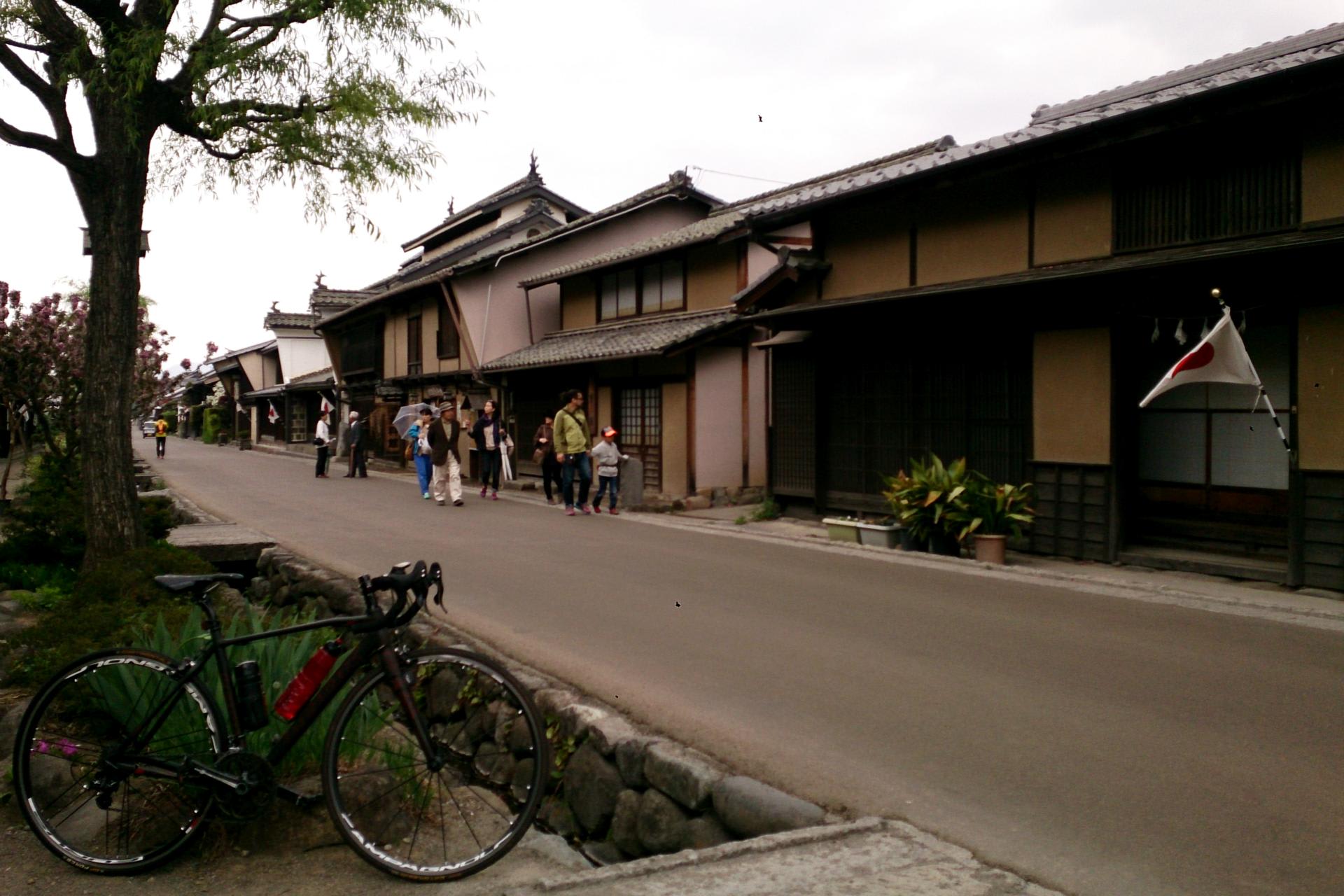 軽井沢から海野宿まではほぼ下り坂なので快調に下るも路面のざらつきにさすがのカーボンフレームもマッサージ機のような有り様、閉口する。