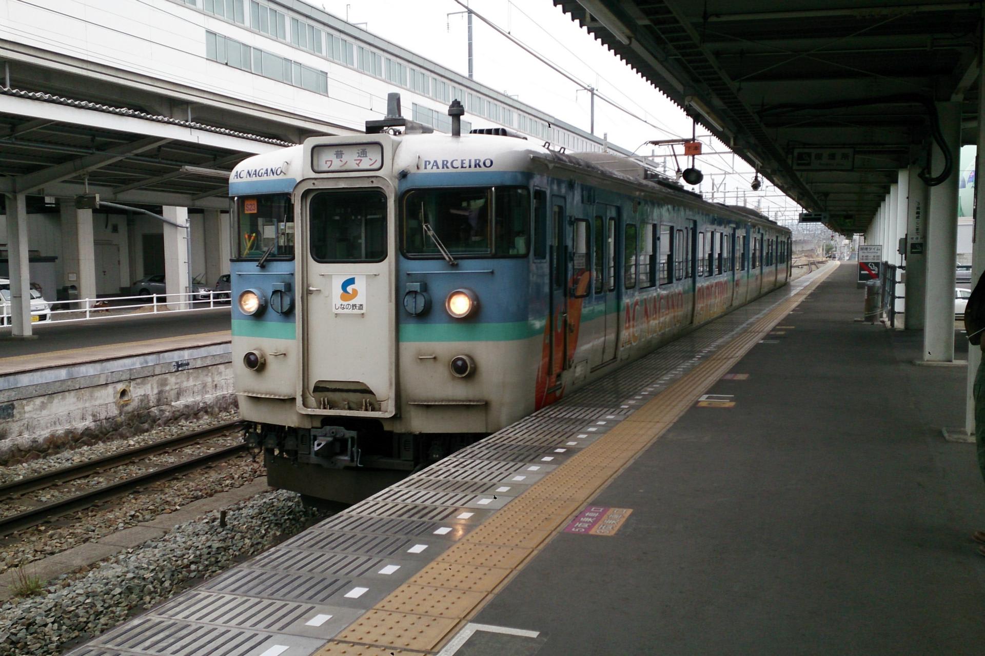 長野色の115系もしなの鉄道で頑張っている。湘南色169系電車は廃車されて坂城駅に静態保存のようだ。
