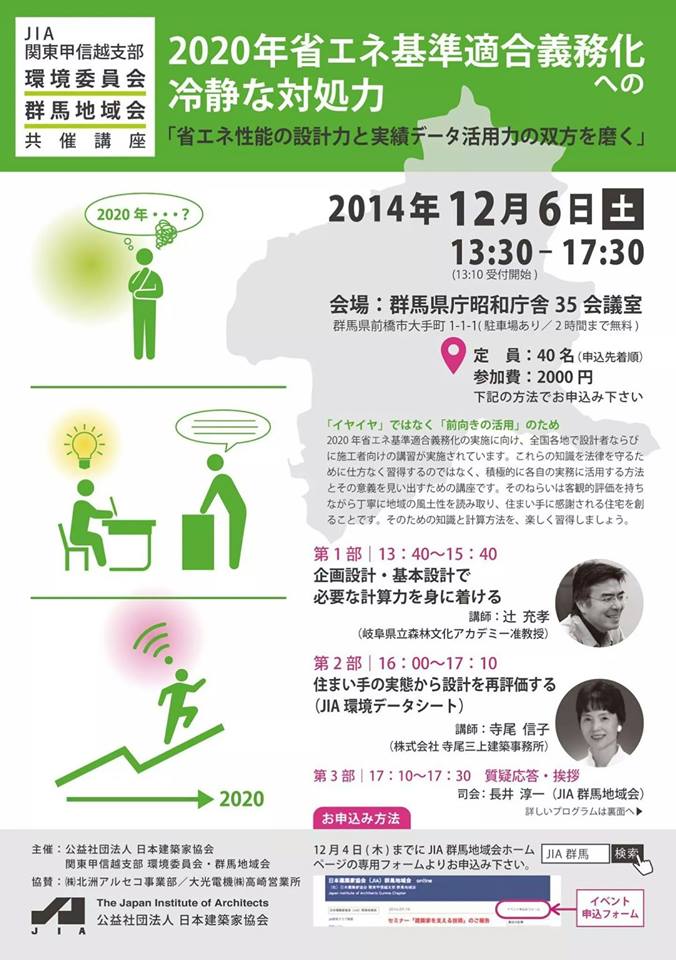 12月6日にJIA群馬クラブが共催するセミナー「2020年省エネ基準適合義務化への冷静な対処力」が開かれる。