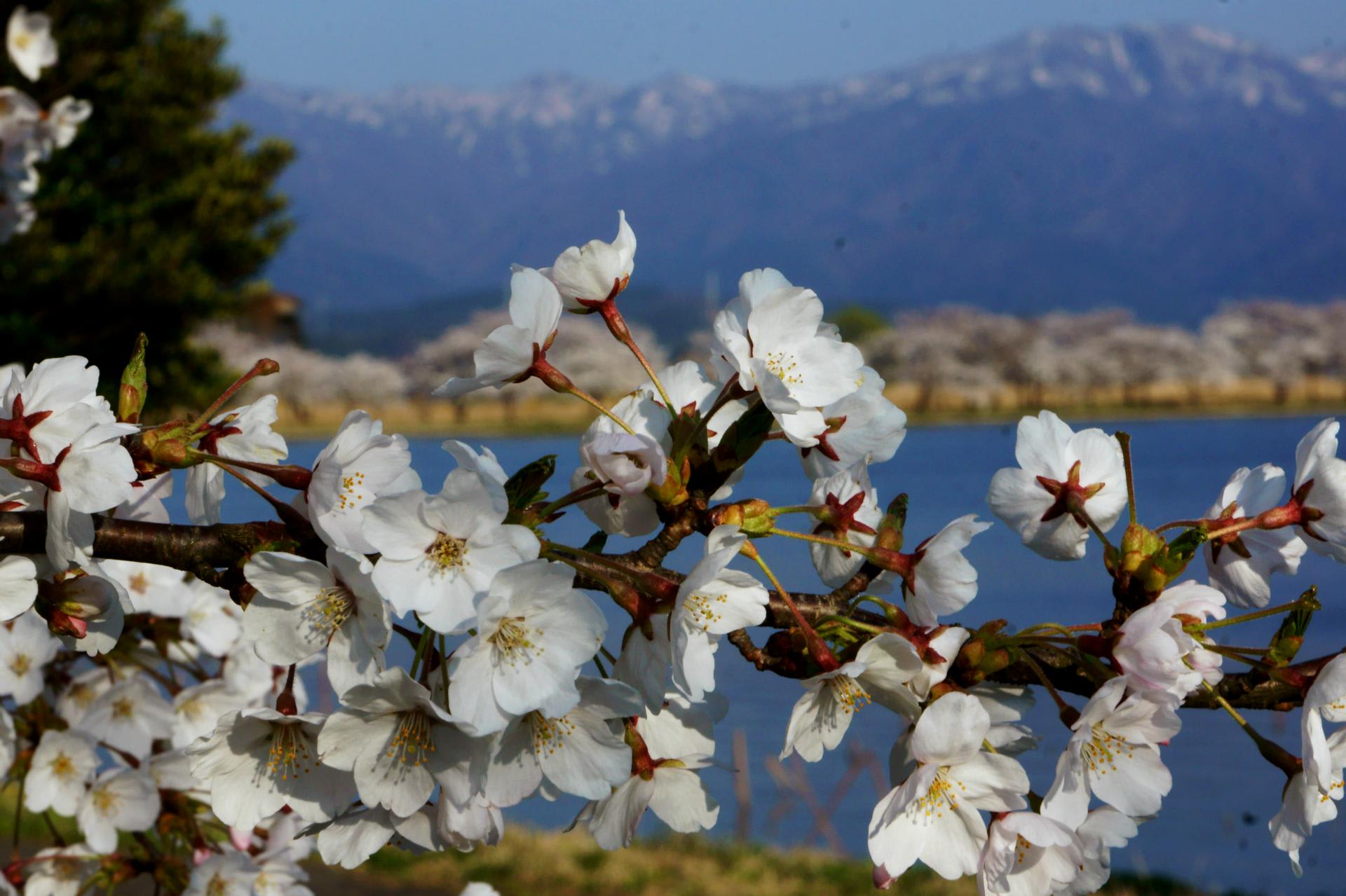 瓢湖は春になると一転、桜の開花によって華やかな風景となる。地元の人たちの暖かい支援が何よりの励みになった。