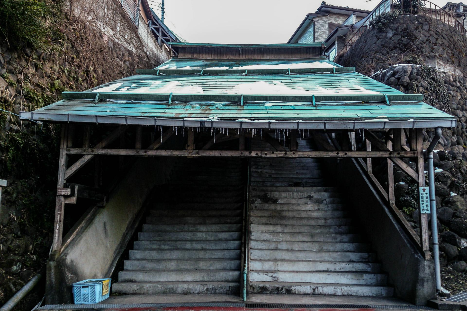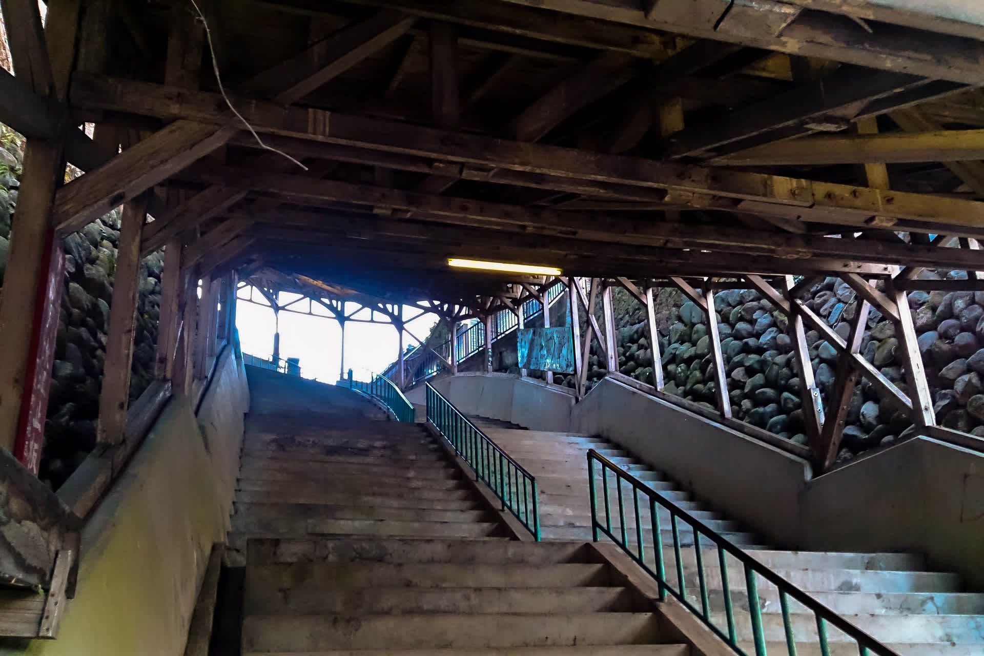 この屋根付き階段もだいぶくたびれているが昭和30年代中頃の記憶に重なる。