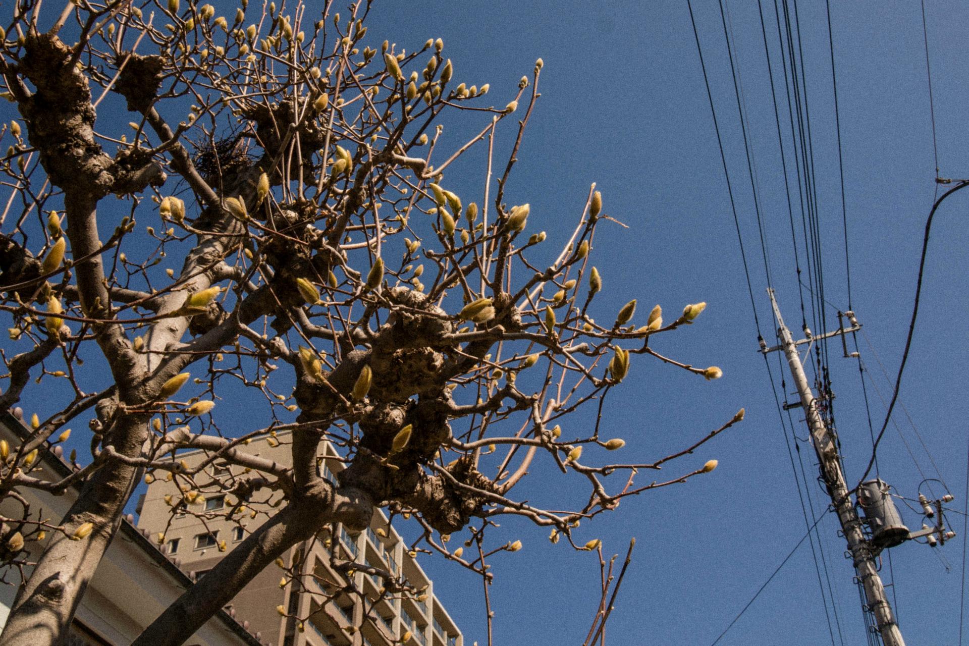 昼休みにカメラを持って少し散歩。近所のお宅の白木蓮がお目当て。