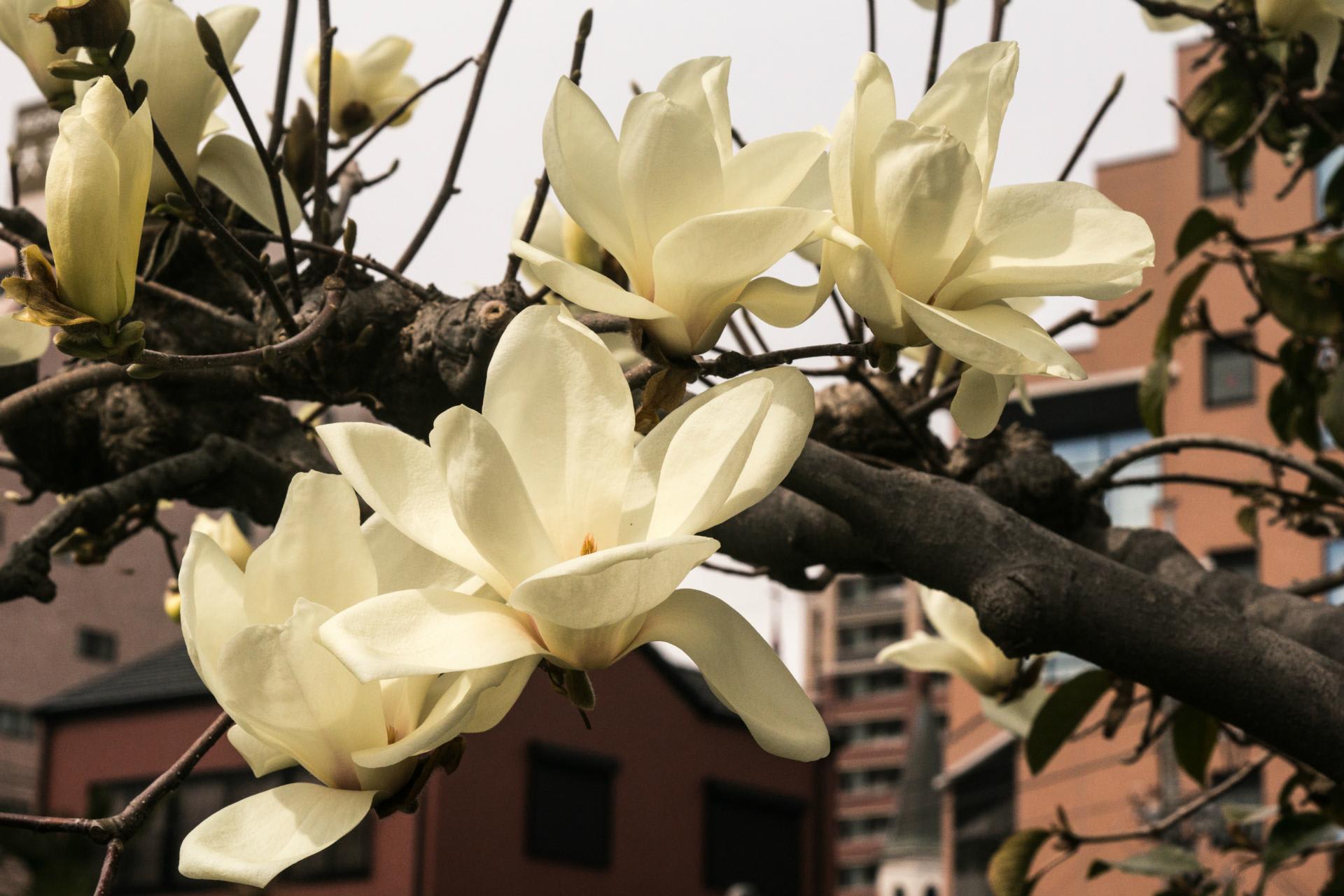 事務所のすぐ近くに白木蓮がある家がある。