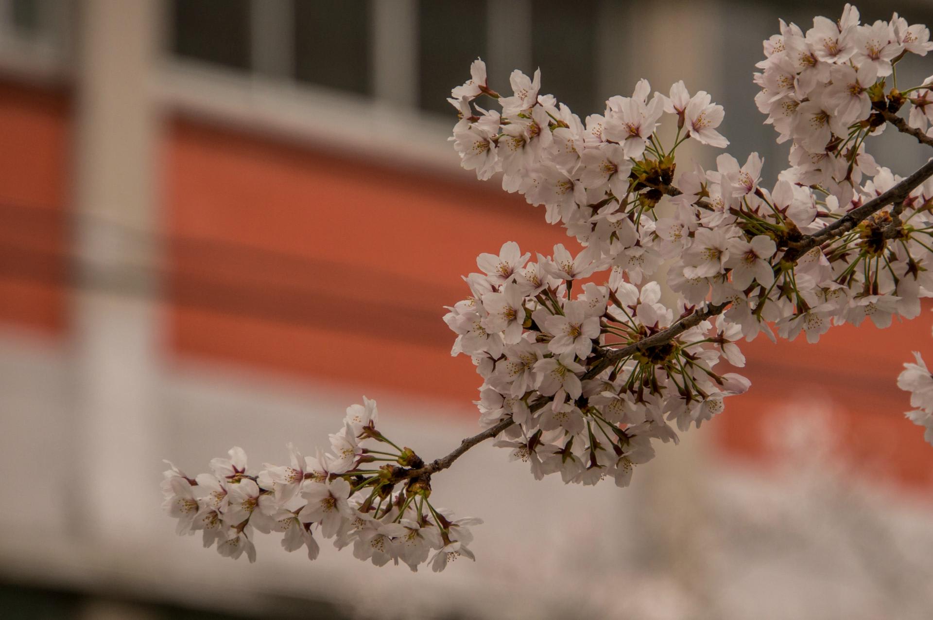 昼休みに市立図書館の庭にお花見、この図書館が建つ前は理容学校の敷地だった。そのときの桜がまだ残る。早くも老朽化(そんなことはない。)で建て替えが検討されているとか。