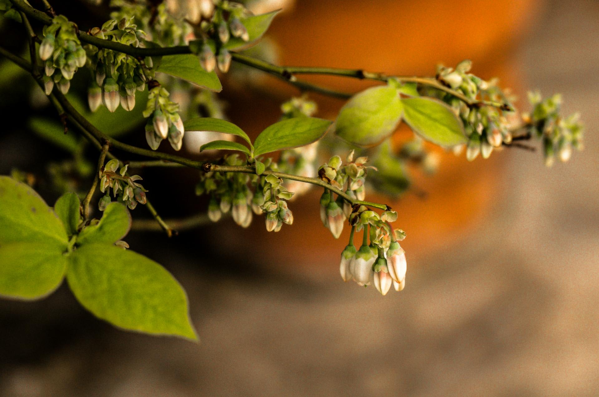 ブルーベリーの小さな白い花が咲き始めた。もう少しで木香薔薇も。