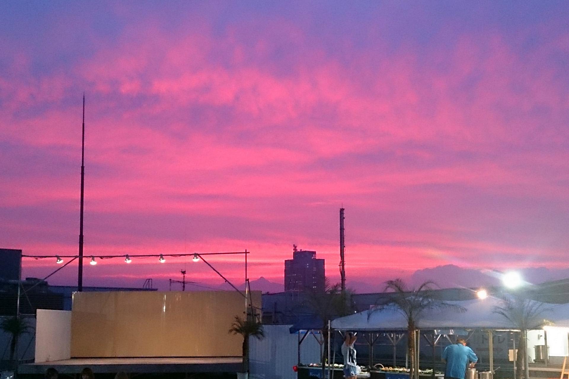 昼ごろ降雨があり心配したが乾杯をするころにはきれいな夕焼け。