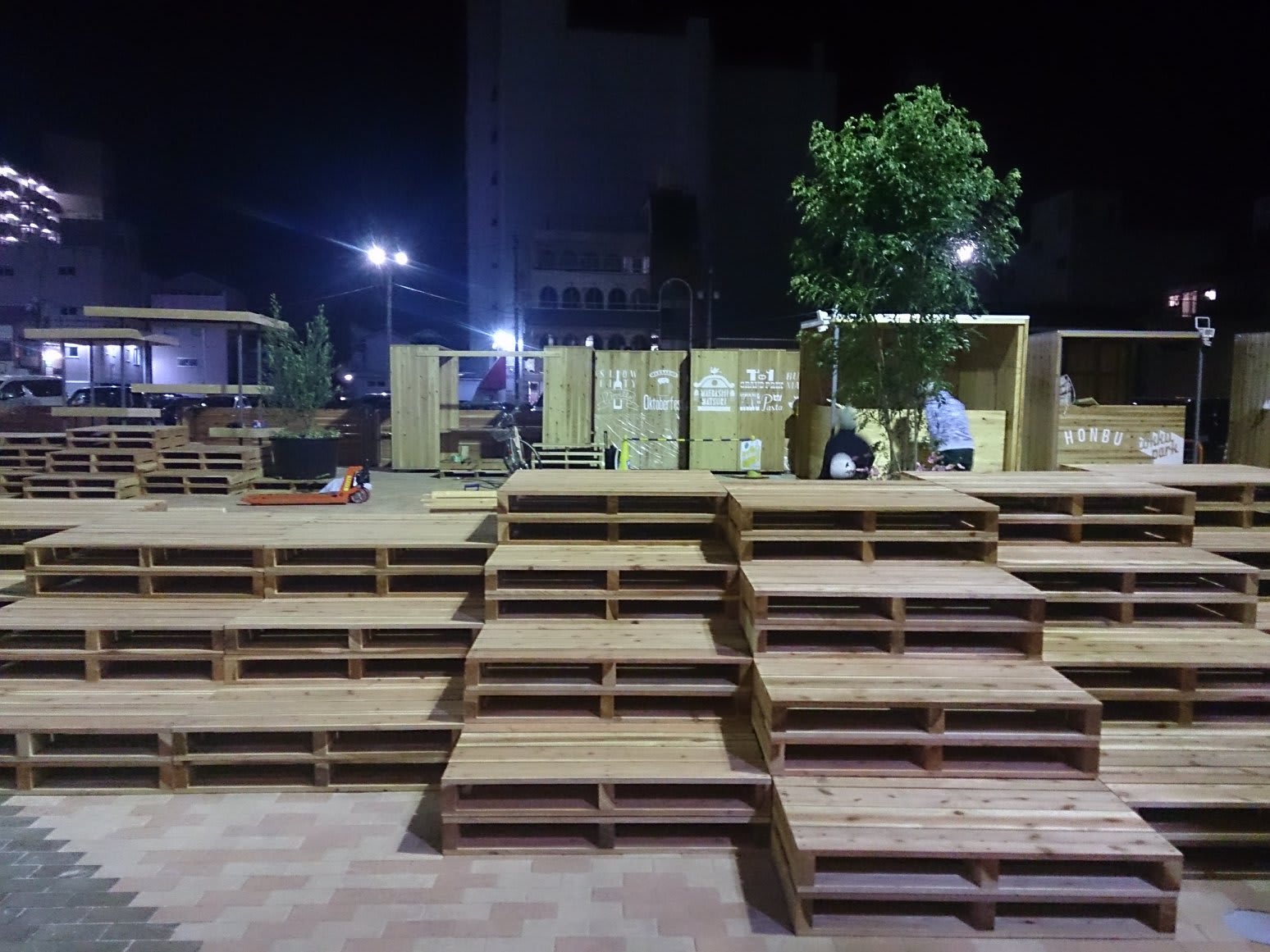 もと麻屋デパートのあった辺りでも仮設のステージが作られていた。