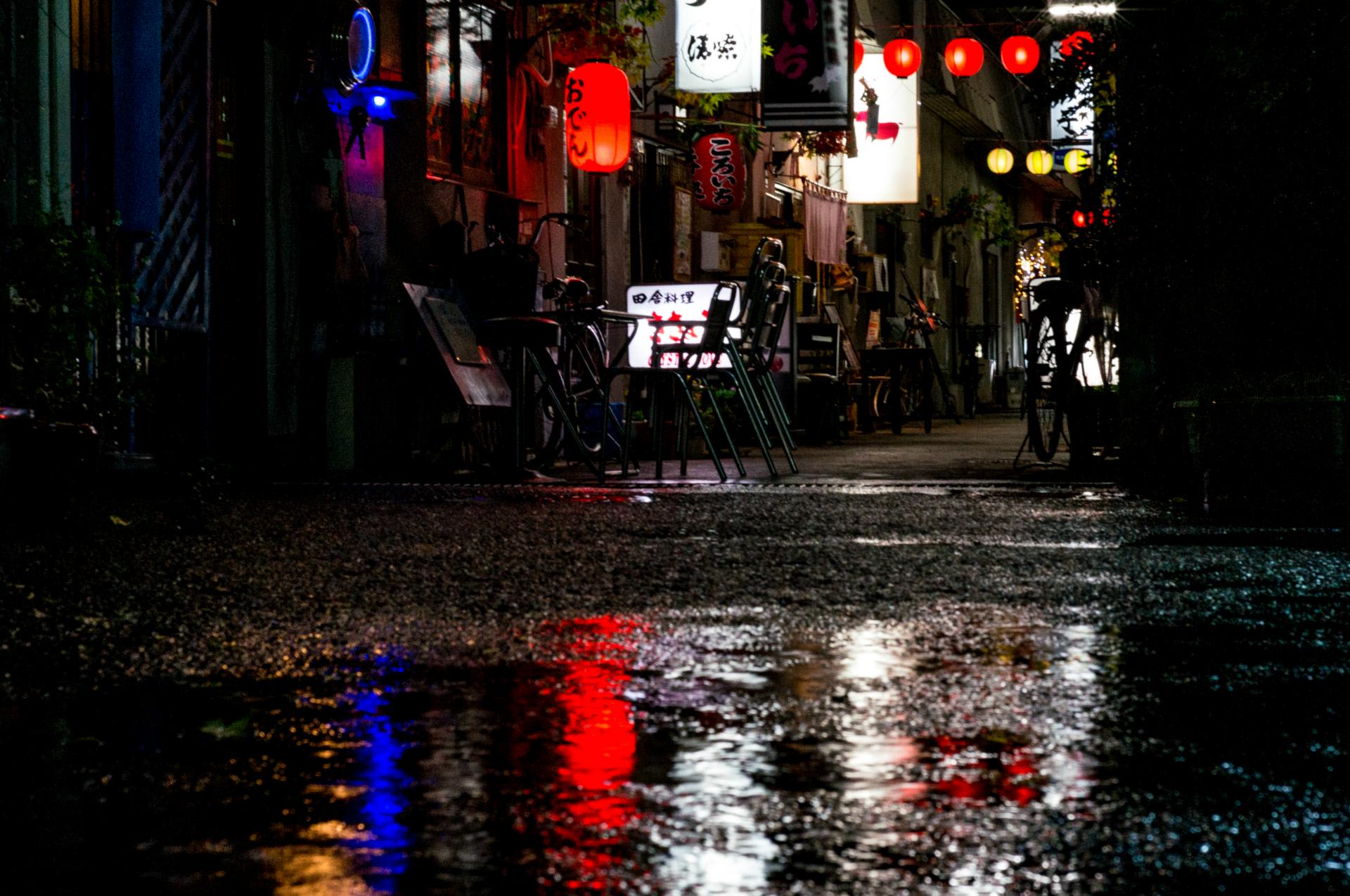 休日には自然とこの通りに足が向く。週末の今日は雨の街の風情をつまみに少し飲んだ。