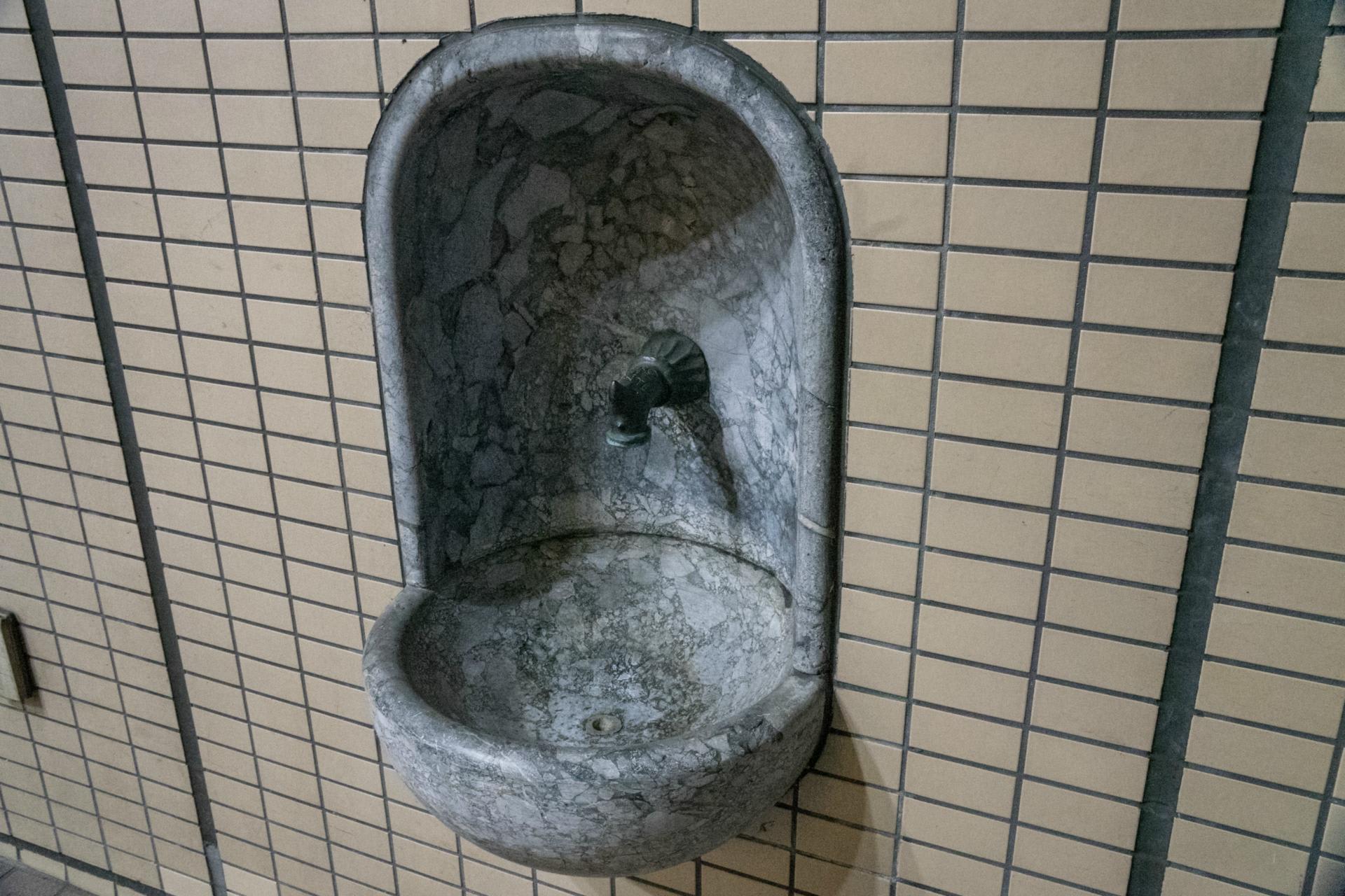 煥乎堂の新しい店には旧店舗にあった手洗い場が移設されている。