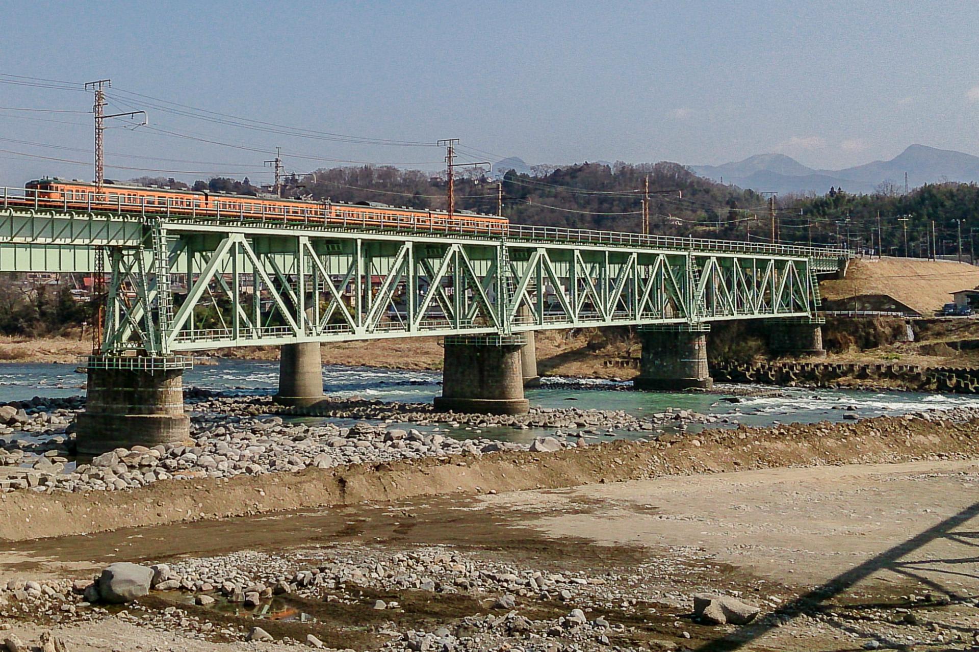 まだ冬色とはいえ赤城山が霞んでいる。水上行115系普通731M列車が通り過ぎていった。