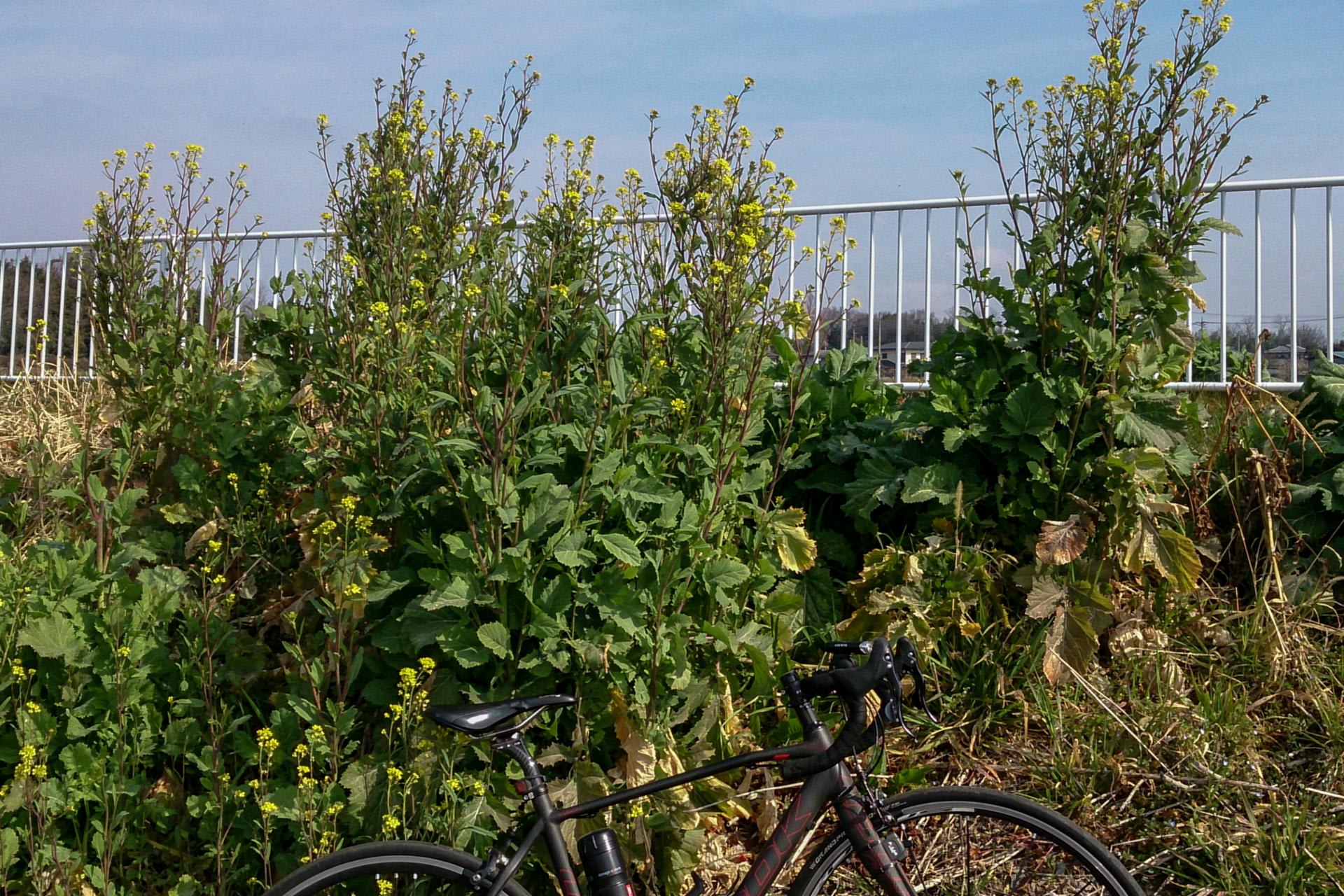 川に沿って走るサイクリングロードでは梅が満開、甘い香りに包まれる。もう沈丁花の香りも漂う。