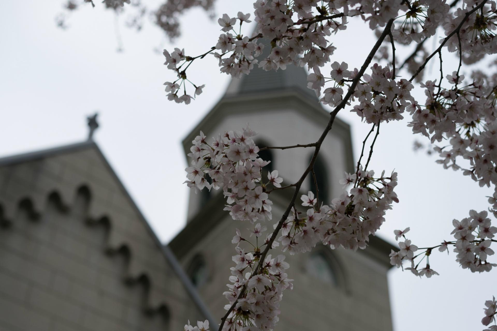 今年も立派な花を咲かせた。近くのカトリック教会の桜も満開。一年のうちでもひときわ華やかなひととき。
