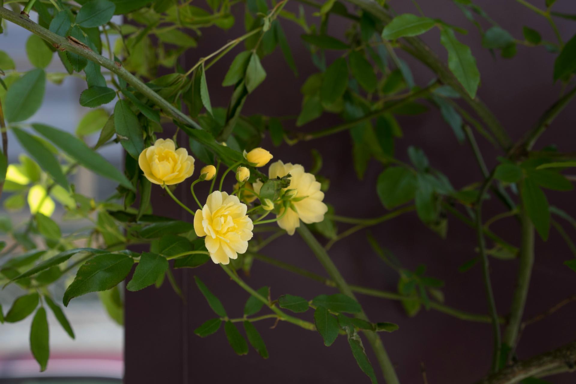 事務所のモッコウバラが咲く。鉢植えなので大変窮屈ながらもう10年以上咲いている。