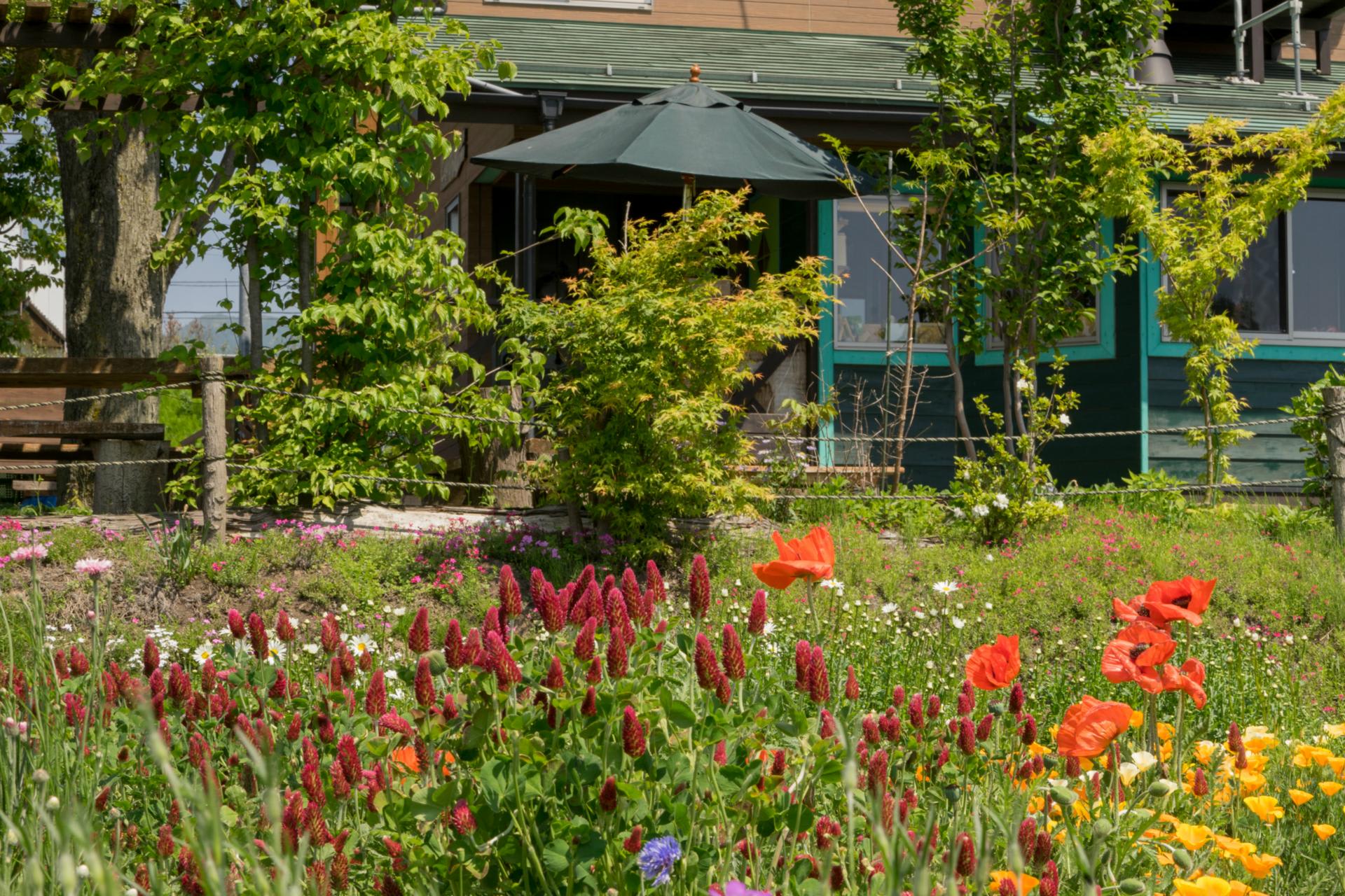 客席の窓からは自家農場の畦に植えられた花壇の花がきれいだったので食後少し撮影させていただいた。