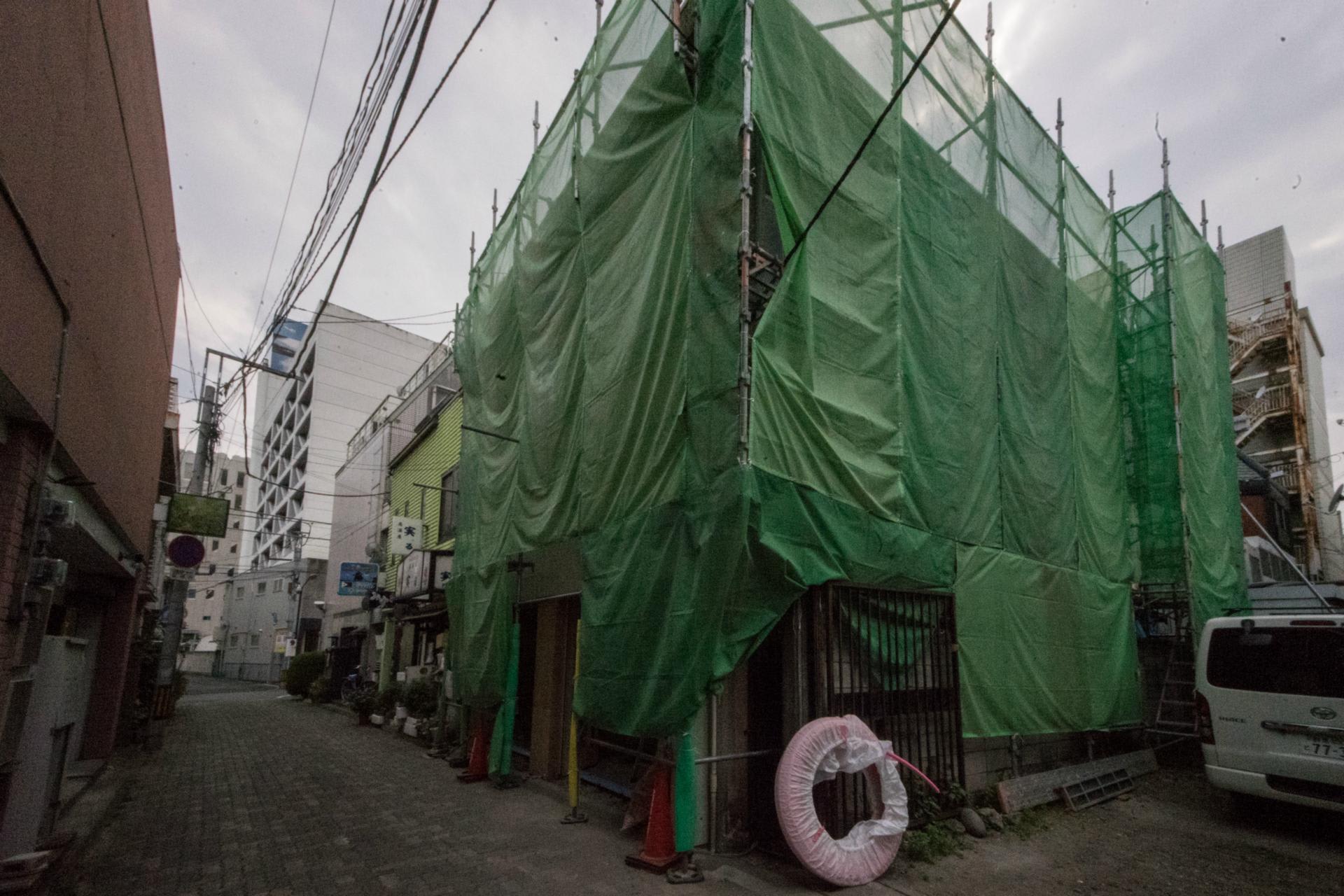 街中でビルの改装工事。今風に言うとリノベーションの類。